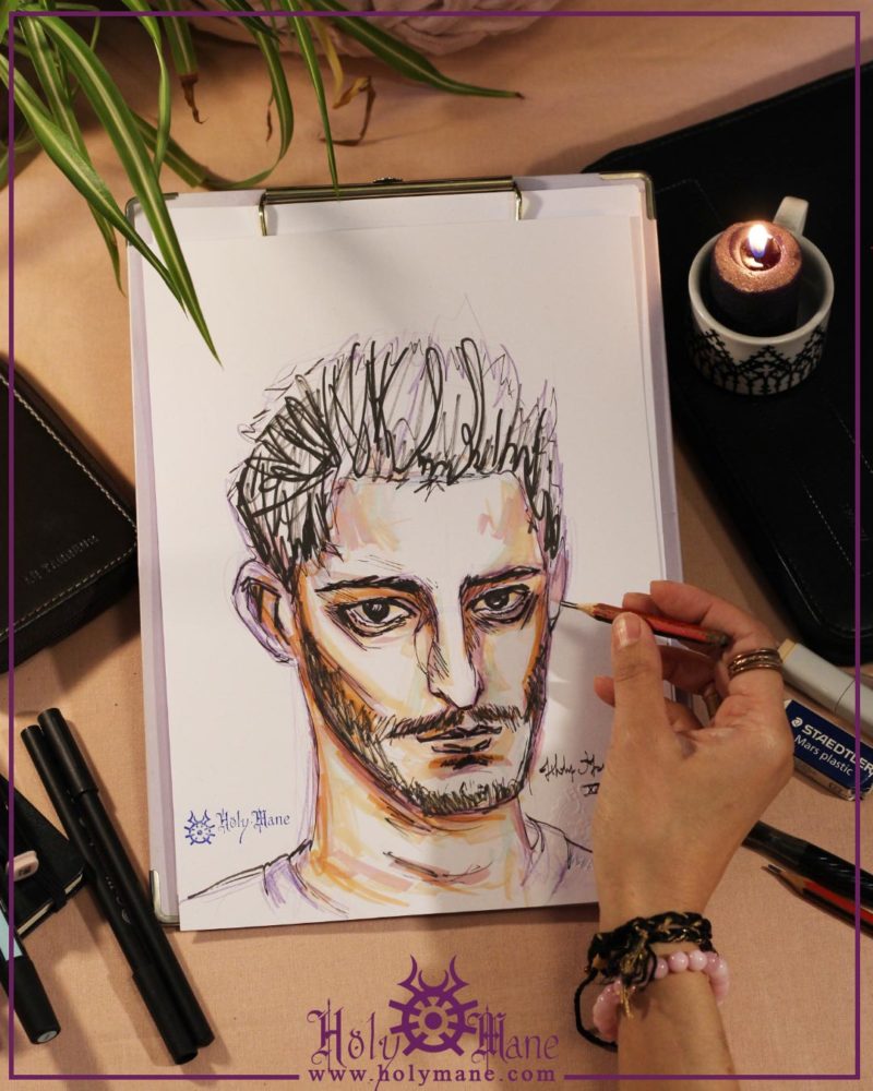 Offrez à vos invités la présence d’une portraitiste capturant les meilleurs souvenirs de vos événements. Dans un style à fois expressif et élégant qui convient bien au monde de la mode, Holy Mane dessine les visages (portraits) mais aussi les tenues (silhouettes), en noir et blanc (crayon et encre) ou en couleurs (feutres ou aquarelle) selon les désirs.